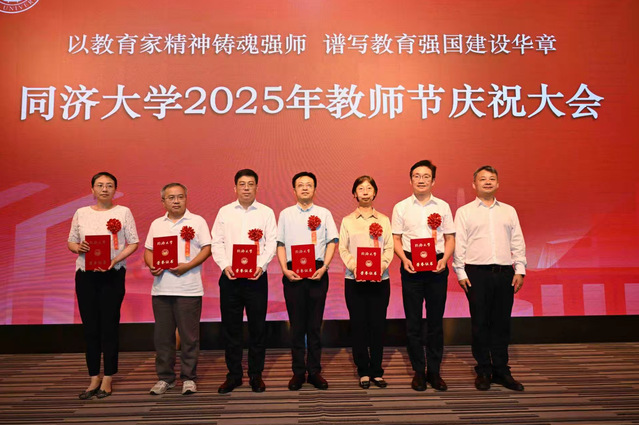 9月10日下午,同济大学2025年教师节庆祝大会在四平路校区举行,我院田军教授获同济大学2025年度“师德师风优秀教师”提名奖表彰。