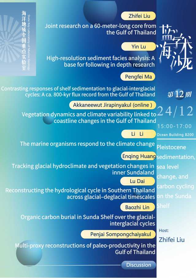 第十二期蓝海学术沙龙:Pleistocene sedimentation, sea level change, and carbon cycling on the Sunda Shelf