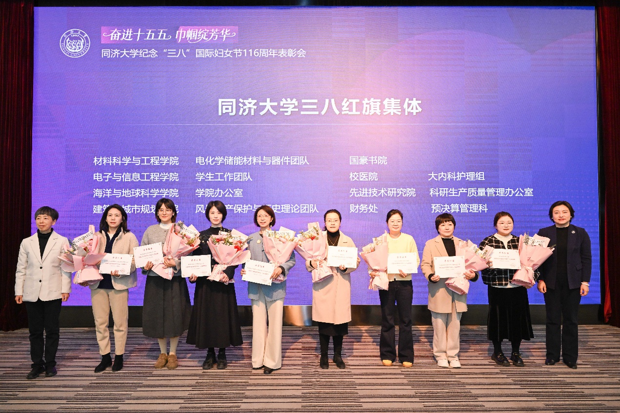 在此次表彰中,我院喜提多项殊荣:杨群慧老师荣获“上海市三八红旗手标兵提名”,并作交流发言;学院办公室荣评“2025年度同济大学三八红旗集体”、高小丰老师荣获“2025年度同济大学青年女教师成才资助金”。