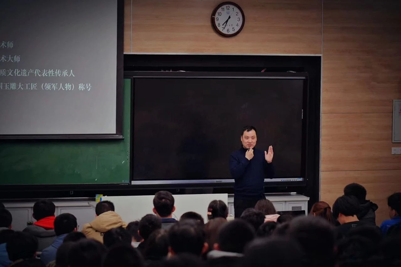 如果起初你并不了解玉石也丝毫不用担心,B站、抖音等平台已有周征宇老师发布的先导课程,回答了关于玉石真假鉴别等大家喜闻乐见的问题。线上慕课课程、线下课堂教学,还时不时会有非物质文化遗产代表性传承人、玉石雕刻领域的工艺美术大师带着他们的作品走进课堂。