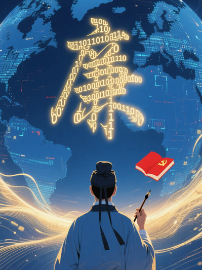 设计思路:本作品以“廉”字为视觉核心,由数字“0”和“1”编码构成,象征在数字时代中坚守清廉信念。海报融合传统与科技元素,展现中华文化底蕴与现代反腐倡廉理念的结合。身着汉服的学者象征着知识与德行的传承,手执毛笔指引廉明之道;背景中的地球与数据波纹则体现廉洁文化的全球共鸣与时代精神。整体风格庄重大气,寓意在数字化社会中筑牢廉洁防线,弘扬清正之风。
