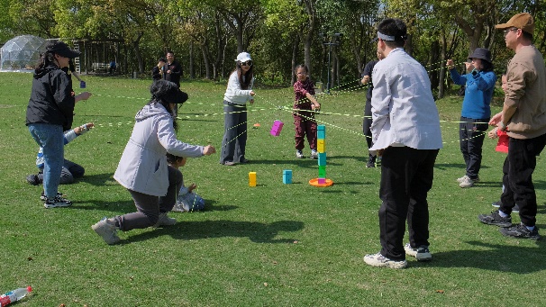 春和景明,万物生发。首日抵达崇明岛瀛东生态村,一场别开生面的“向往的生活”主题趣味赛拉开帷幕。平日里严谨治学的老师们化身“乡野运动员”,在“蔬菜连连看”中比拼眼力与默契,在“珠行碗里”考验接力的精准流畅,“合力筑塔”游戏环节更是将团队协作推向高潮。团建过程中大家排兵布阵、互相打气。傍晚天幕之下,伴着星空与篝火,老师们围坐畅谈,从科研心得聊到生活趣事,平日埋首工作的同事变成了并肩作战的队友、无话不谈的朋友。